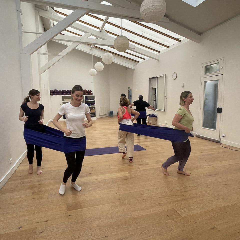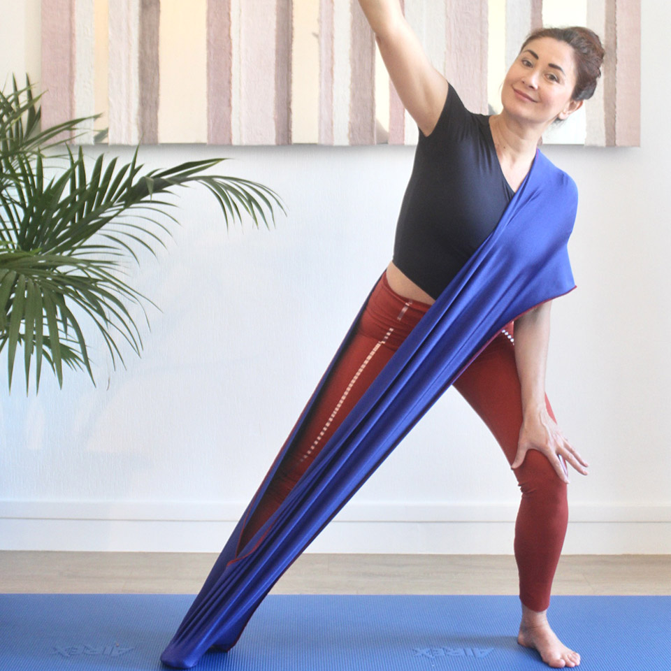 La Dynamic Band de Fasciadynamic© est un outil puissant qui intensifie l'expérience corporelle. Elastique et résistante, elle est un moyen pour tisser des liens : en reliant les différentes parties du corps, elle contribue à unifier, harmoniser les difféernts aspects de soi. La Dynamic Band permet d’ approfondir le travail corporel à partir de l’écoute des fascias, ces tissus essentiels qui soutiennent et connectent chaque partie de notre corps. Elle favorise une perception corporelle affinée, détend et renforce. Elle restaure un bien-être inné en recréant des connexions vivantes, profondes et ludiques. Grâce à la Dynamic Band, nous pouvons renforcer nos liens intérieurs tout en créant une connexion consistante, fluide et harmonieuse aussi avec les autres, dans un mouvement riche de sens et de présence. La Dynamic Band permet d’expérimenter les qualités fondamentales de l’organisme selon les principes de la Bio-tenségrité (un modèle architectural d’intégrité par la tension appliqué au corps humain grâce aux découvertes des fascias).